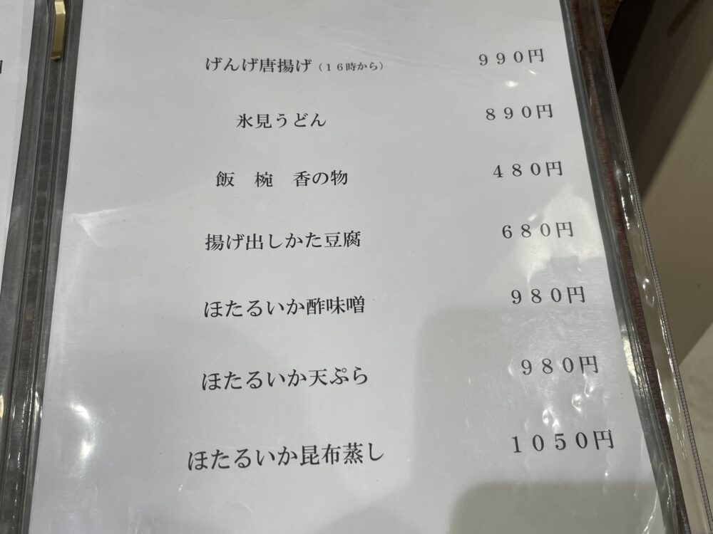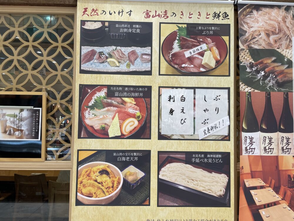白えびやほたるいか、げんげなど、富山ならではの食材を使ったメニューが揃っています。