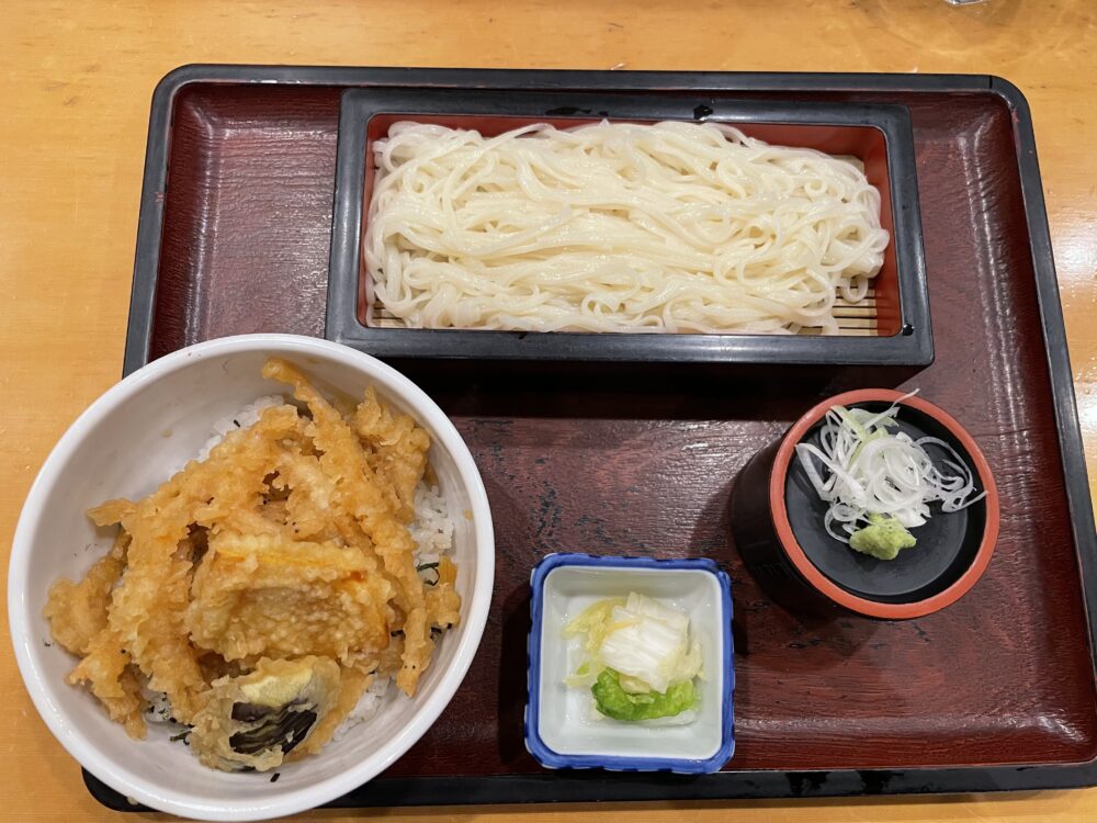 白えび天丼と氷見うどんセット(2,280円)。富山の名物を一度に楽しめる、おすすめのセットです。