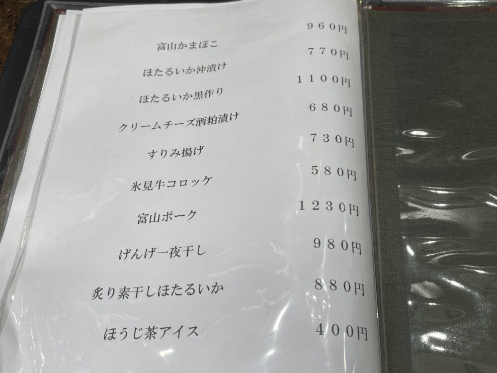 とやま方舟のメニュー