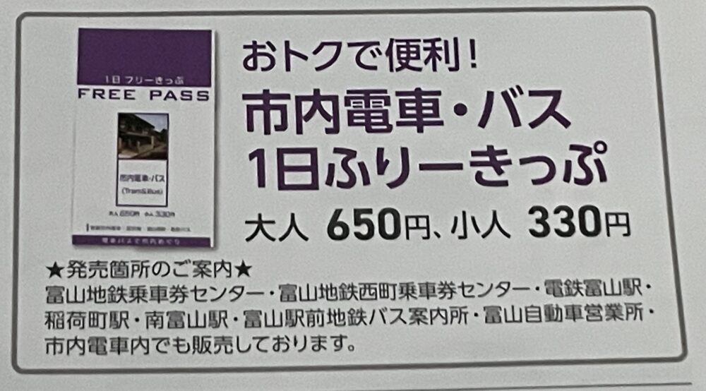 富山市の路面電車には、1日乗り放題の乗車券が用意されています。